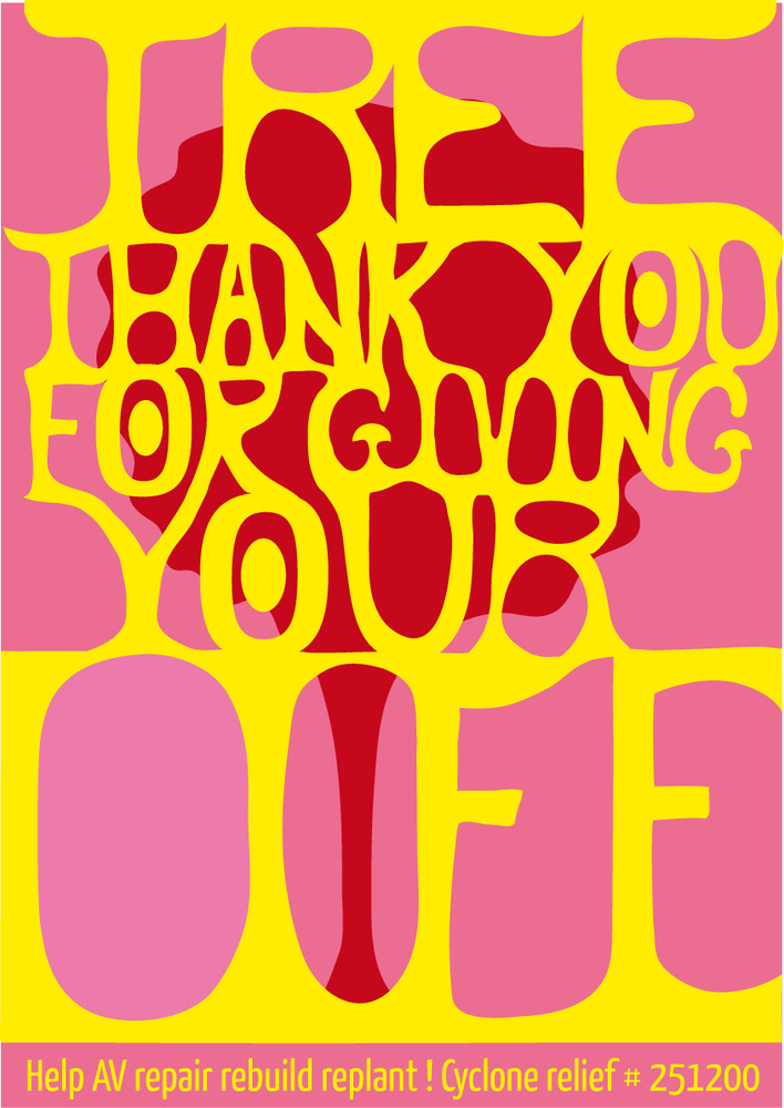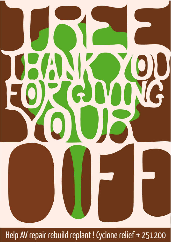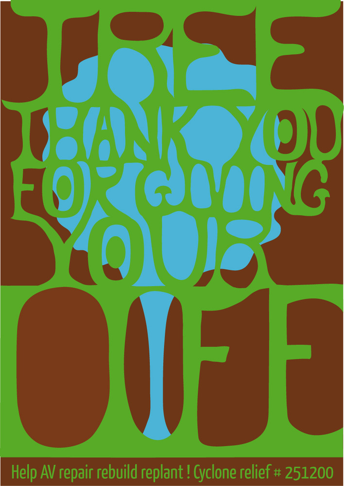 Set of 3 posters printed in January 2012. After a Cyclone disaster that killed 1000 trees in the forest of Auroville, India. Famous for its reforestation work, Auroville took 40 years to transform a red earth desert into a luxurious dry tropical forest. A lot of work and will and faith made it a magnificent place. The cyclone rushed it back to another start. The trees all fell but all the people survived.