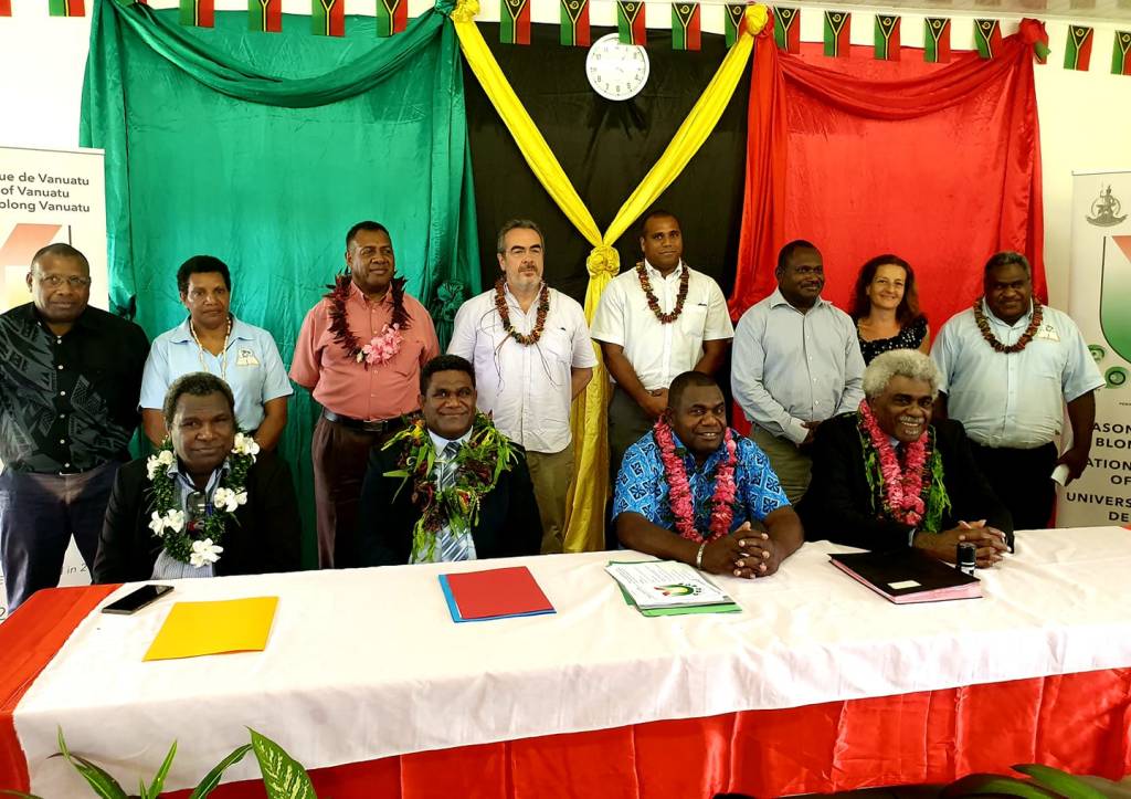 Prime Minister Hon. Charlot Salwai, Minister of Education and Training Hon. Jean-Pierre Nirua, France Embassy and Australian High Commission representatives of the diplomatic corps, Directors General, representatives of the partners’ universities, lecturers and students have launched the official opening of the Vanuatu National University on February 29th, 2020. Merci Anne-Sophie Vivier, Pierre Metsan et toute l’équipe de l’ Université Nationale du Vanuatu !