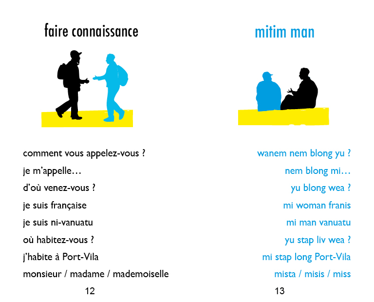 Petit guide de conversation en bichelamar publié par l’Alliance Française de Port-Vila. My favorite little book, a pocket guide of conversation in bislama (for french speakers)