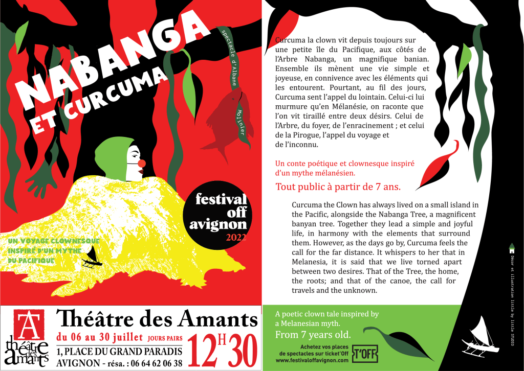 Here we go ! Nabanga and Curcuma at the Festival d’Avignon all July!!! A wonderful show by Albane Molinier full of emotions and discoveries. A surprising contemporary interpretation of the ancestral Melanesian myth about the paradox of the tree and the canoe, the idea of being rooted and the desire to travel. Go for it !