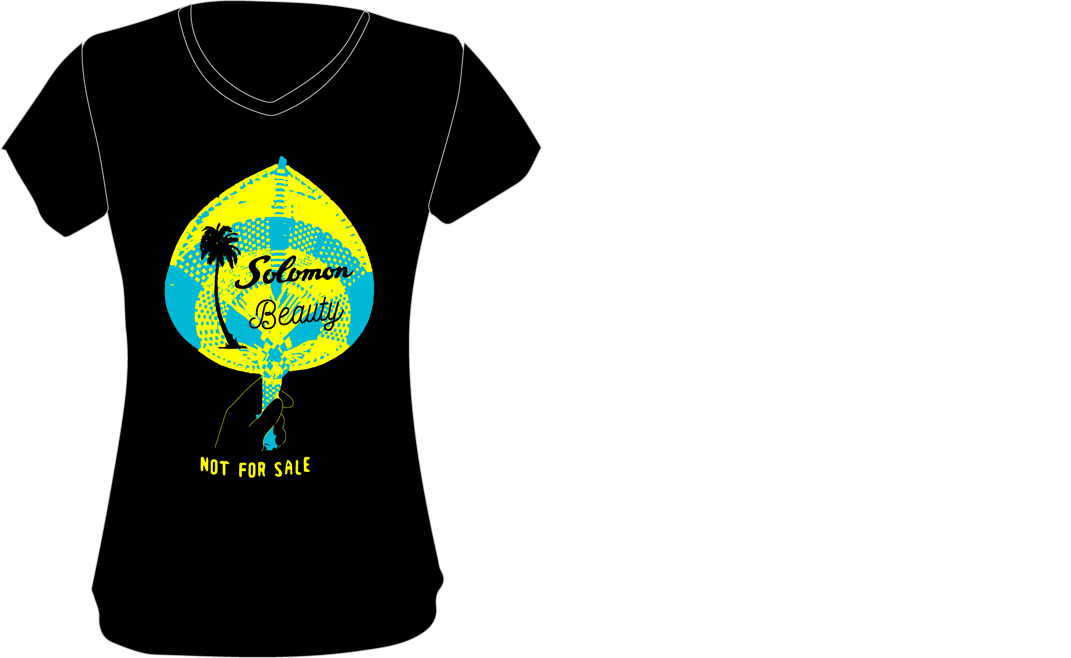 The t-shirt series is featuring traditional objects related to Women’s beauty in the Solomon (the fan and the comb) and clearly say NOT FOR SALE.